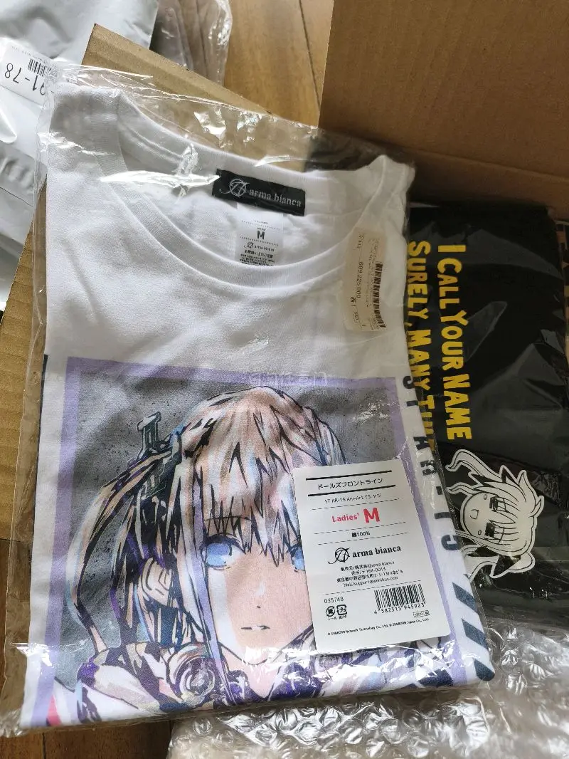 ar15是我最喜欢的角色。国内的谷子也买了不少。本来想过来看看日谷有没有没见过的。没想到遇到有卖衣服的。而且才三十几块。我直接拿下。菲特也好可爱