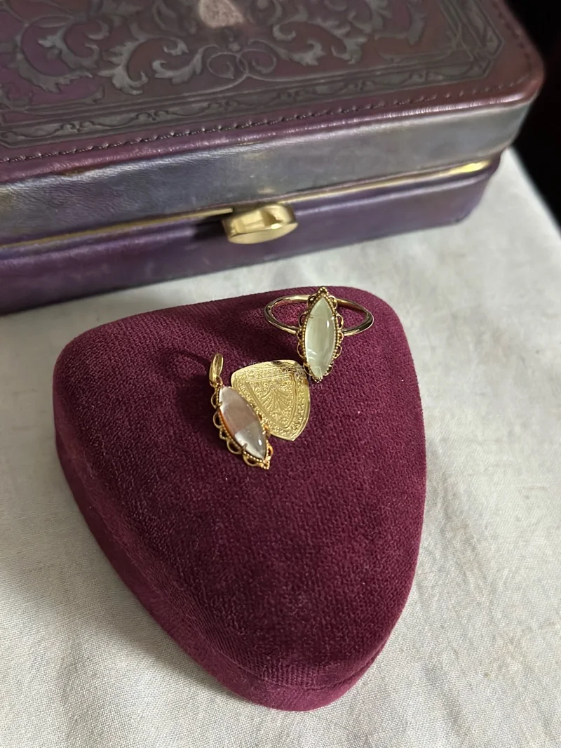 12年classic吊坠的粉色款,但是似乎有一点瑕疵,仔细看似乎问题出现在贝母和粉晶的贴面之间。 也颇有特色了,乍一看像超七。 美丽的蕾丝花边与设计。