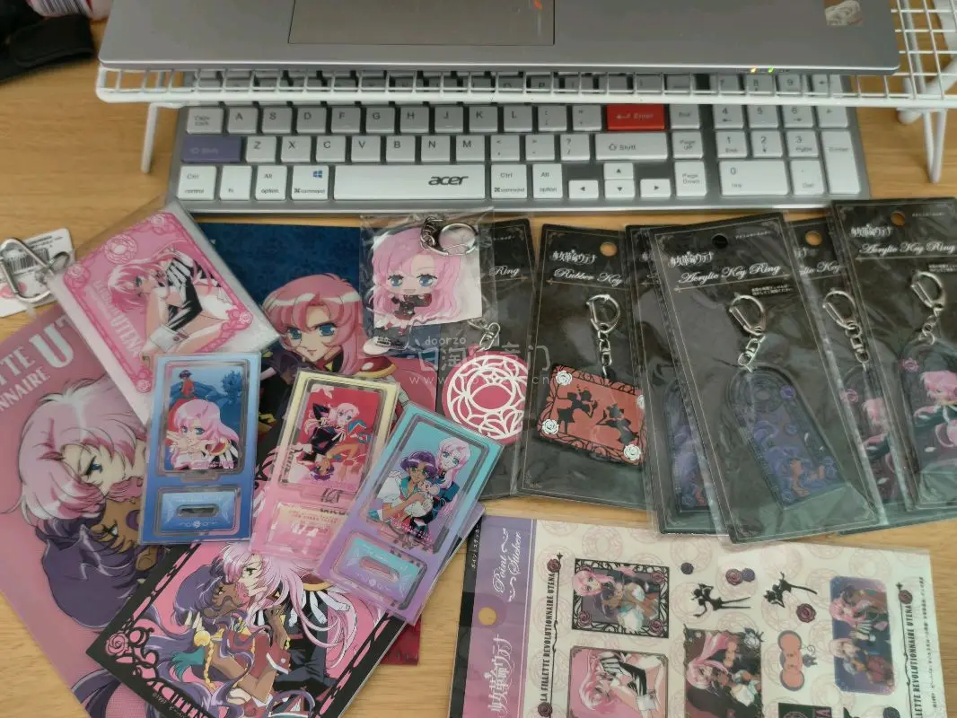 谁懂啊!刚到手的少女革命百元店周边开箱,直接被狠狠惊艳到!本骨灰粉真的要吹爆这波性价比,百元价位能买到这么精致的谷子,真的太香了! 先说说质感,完全超出预期!亚克力挂件的通透度绝了,天上欧蒂娜和薰干的角色印花清晰到连发丝细节都能看清,色彩饱和度超高,粉紫调的玫瑰纹样还原度满分,边缘切割平整没有毛刺,挂在包上晃悠都不怕刮花。立牌的厚度也很在线,不是那种软塌塌的薄款,摆在桌面稳稳的,角色互动造型超有氛围感,瞬间把桌面变成少女革命专属小天地。 还有钥匙扣和贴纸这些小配件,细节直接拉满!钥匙扣的金属扣质感扎实,挂链长度刚好,背包装饰或者挂钥匙都很合适;贴纸的裁切超精准,图案贴合度满分,贴在手账、手机壳上完全不翘边,而且材质耐磨不易掉色,日常使用超省心。 最惊喜的是品控,所有周边包装都完好,没有出现压痕、掉色或者印刷模糊的情况,能看出厂家做工很用心。作为百元店周边,不仅颜值能打,实用性也超强,不管是收藏还是日常使用都完全没问题。 真心推荐给少女革命的同好!几十块的价格能买到这么高质量的谷子,真的闭眼冲不亏!
