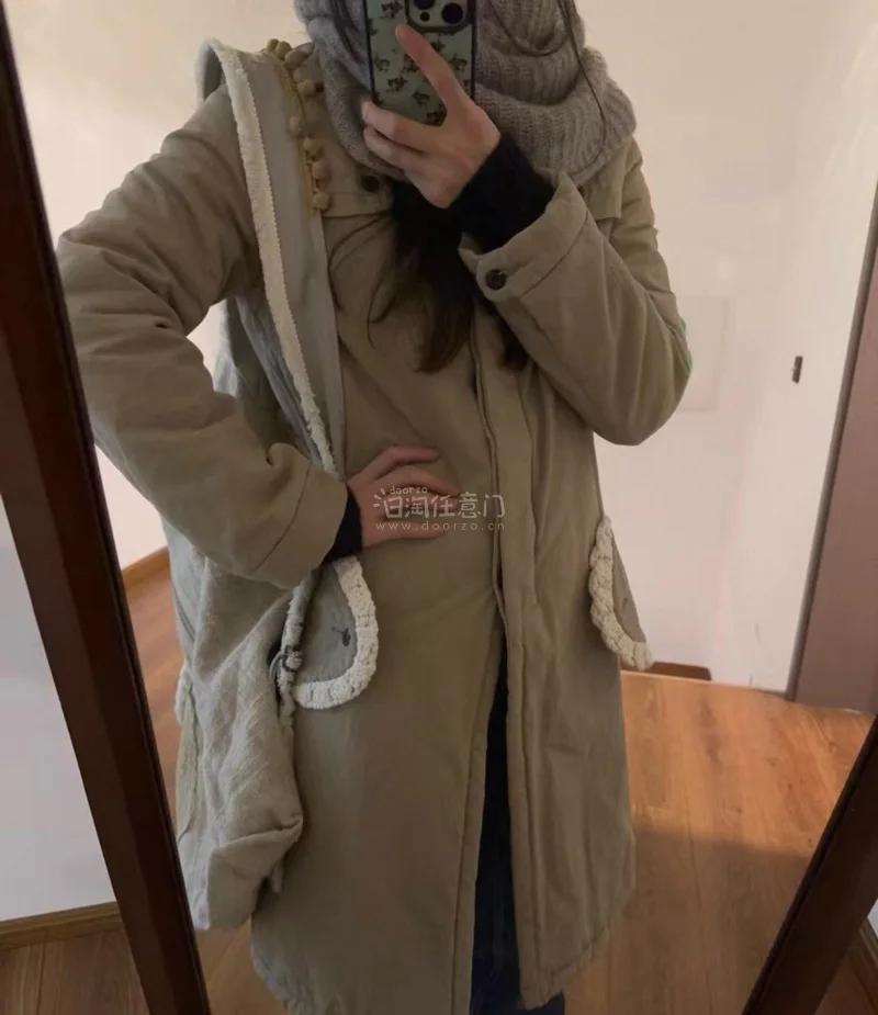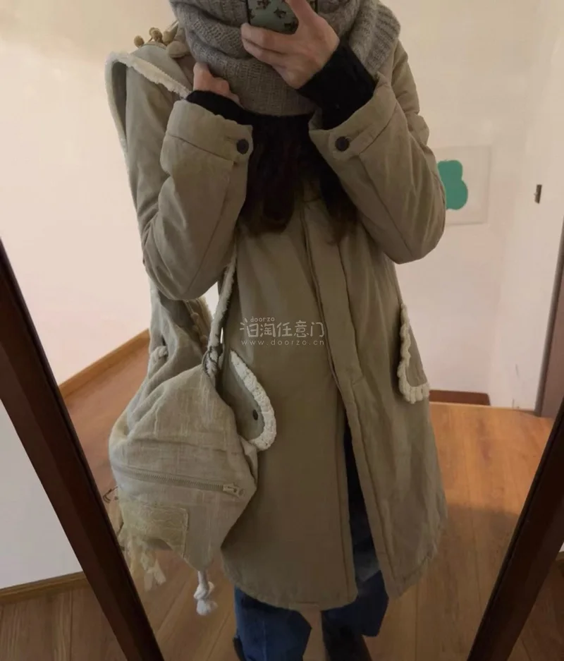 这件棉服又可爱又保暖!两个兜兜旁边还有一圈的白色钩织蕾丝边!真的太好看啦,忍不住多拍几张了,大家请欣赏~
