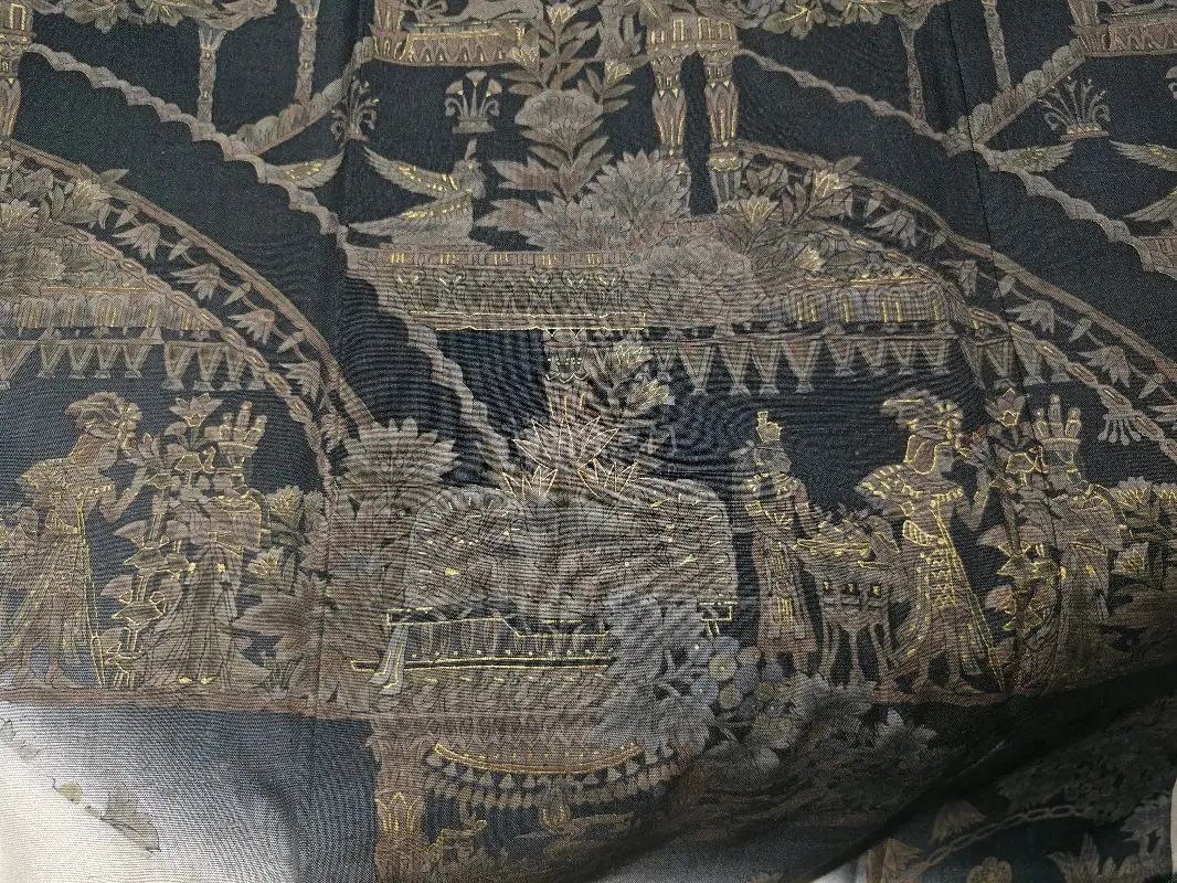 平和屋着物●訪問着 紬地 エジプト壁画文様 暈し染め 金彩 正絹 逸品 DAAX1486op