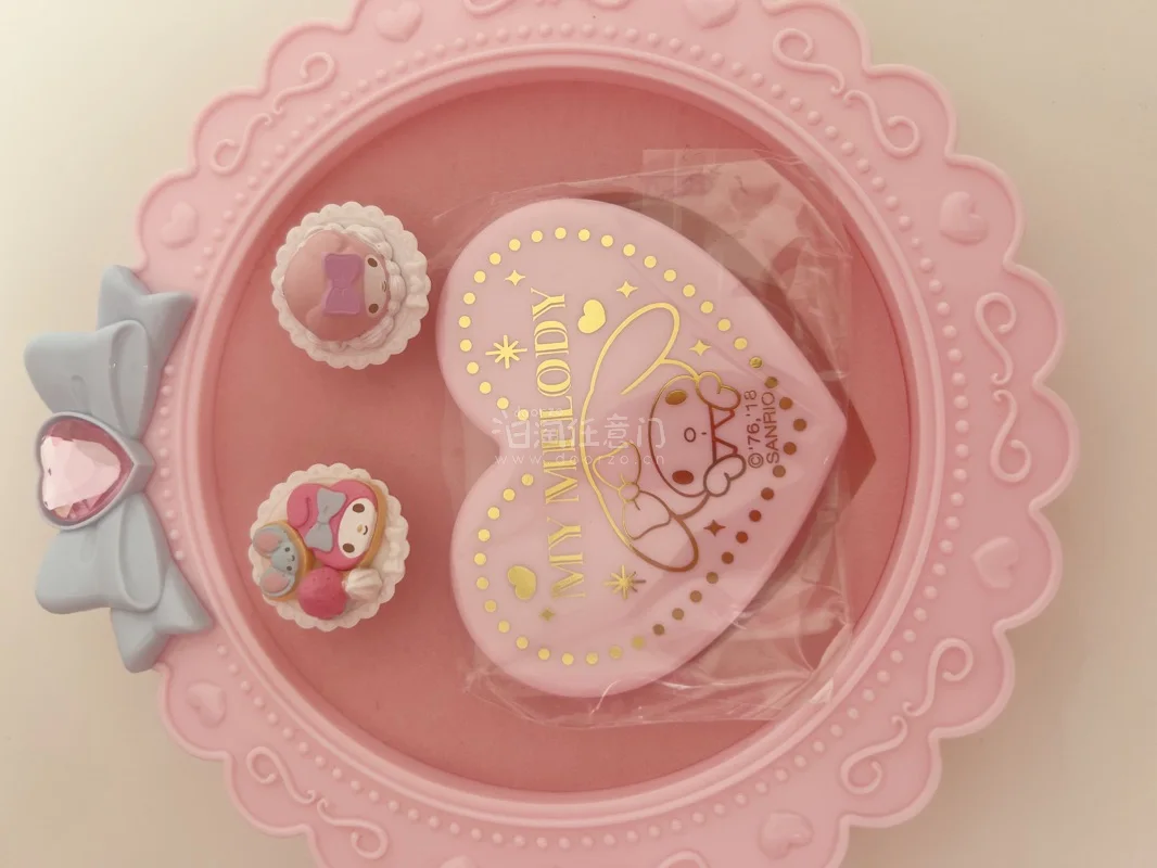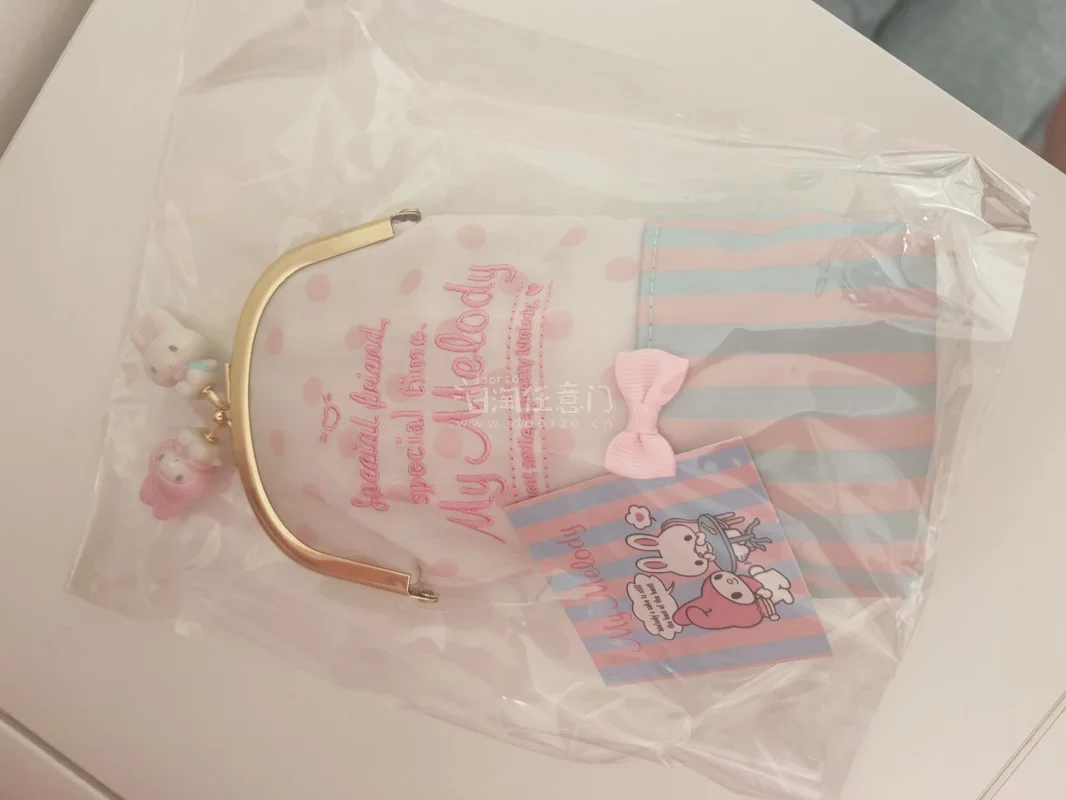 都是2018年的半中古美乐蒂,首饰盒里有一个心形镜子和两个美乐蒂小戒指。另一个是口金笔袋,口金处的美乐蒂和弟弟特别精致。两个小东西都超级粉嫩,推荐!