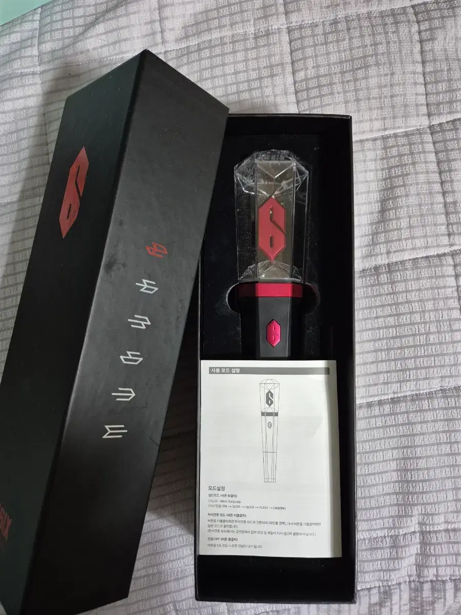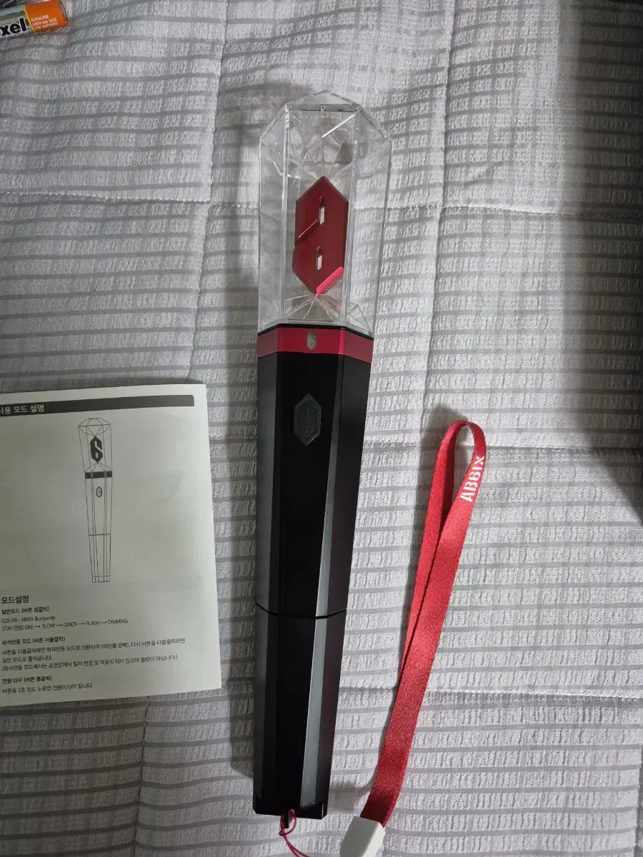 에이비식스 응원봉 판매합니다.사용 한 적 없습니다.작동이되나 건저지를 넣어보고 박스에 보관만 한 정도입니다.그래서 깨끗합니다!그리고 작동 잘 됩니다.네고 가능합니다:)