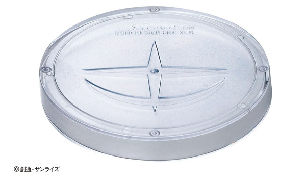 透明ピースを組み上げる立体ジグソーパズル 台座には地球連邦軍のロゴマークが刻印されています。