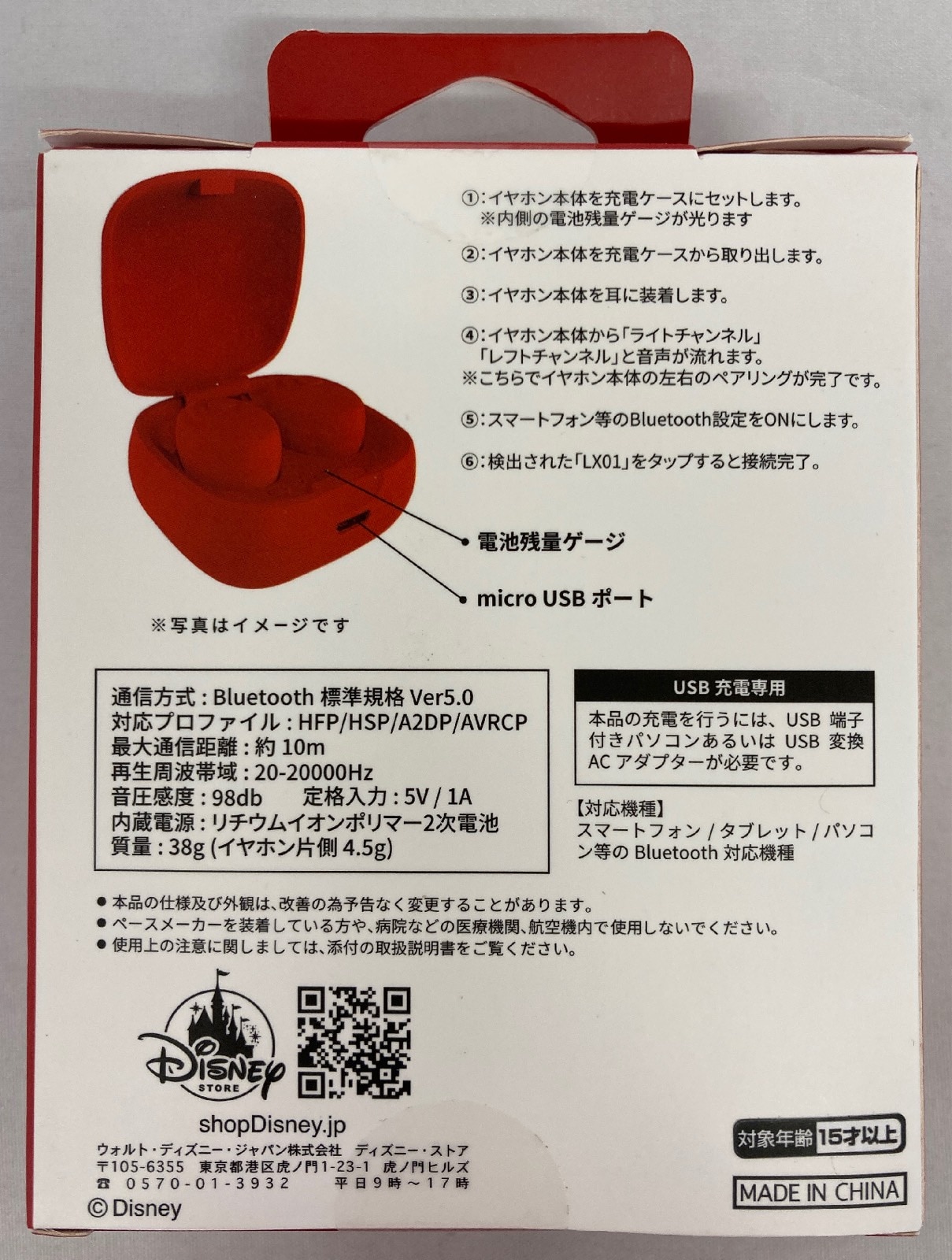 ディズニーストア 完全ワイヤレスステレオイヤフォン ミニーマウス(赤)