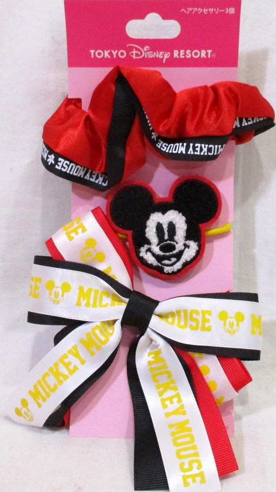 【未使用】ディズニー ミッキーマウス ヘアアクセサリー3個セット ヘアゴム リボン シュシュ