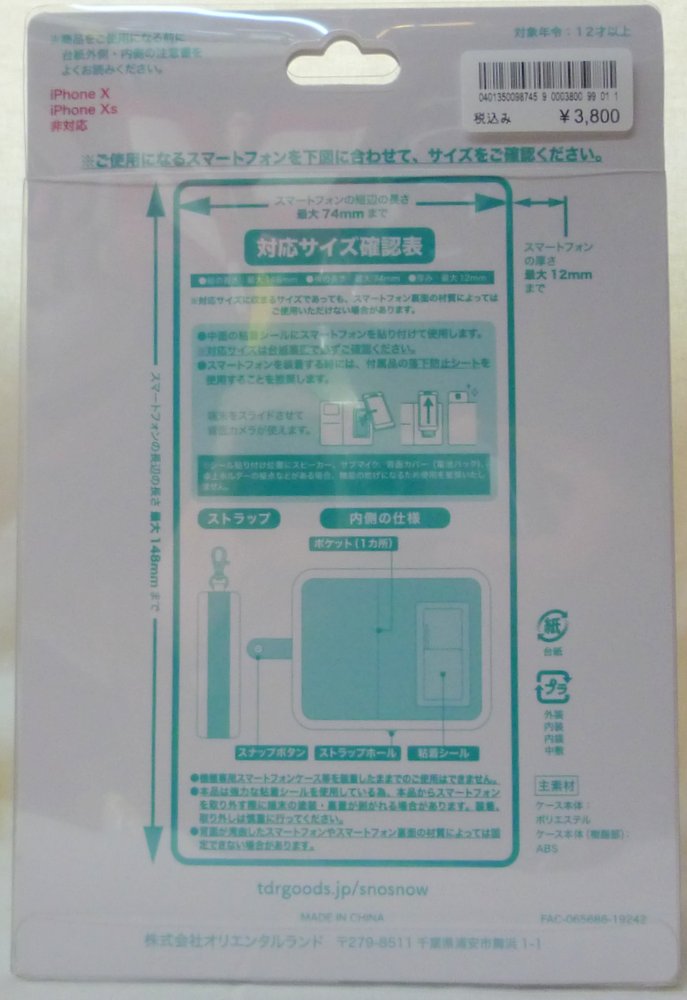 東京ディズニーランド SnoSnow スマートフォンケース 落下防止シート付 TDL2019
