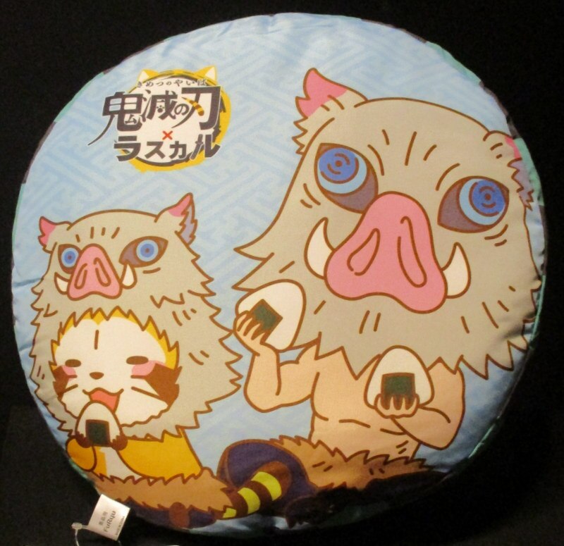 中古☆プライズ☆鬼滅の刃×ラスカル ラウンドクッション/竈門炭治郎&嘴平伊之助