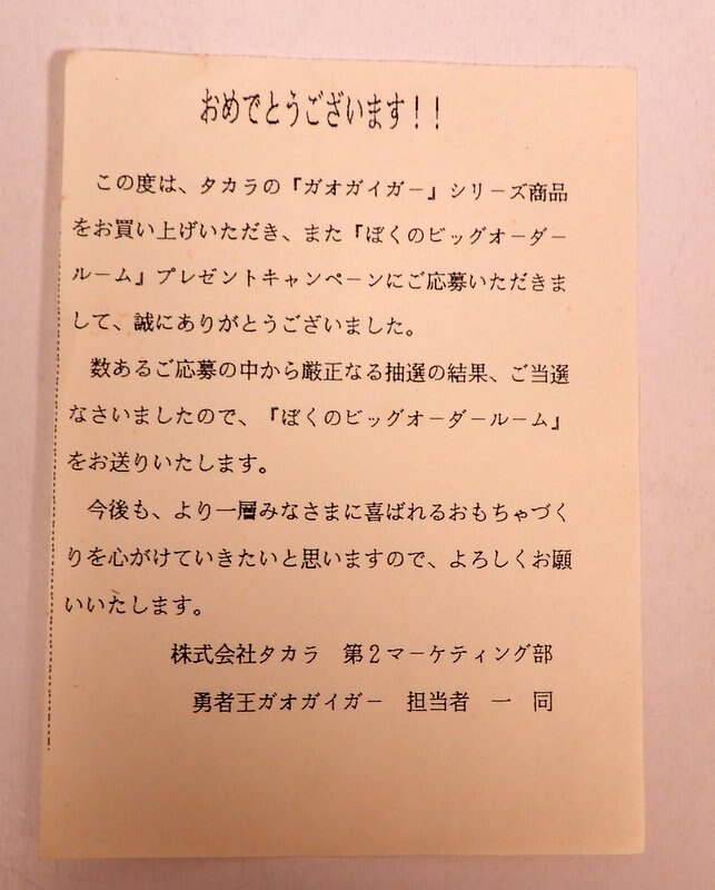 タカラ 懸賞品 僕のビッグオーダールーム