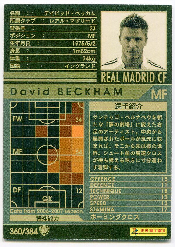 セガ WCCF WCCF06-07 ☆ジュンイチイナモト(06-07/付録) 付録