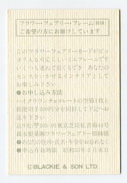 森永製菓 裏面:右上番号ナシ S55/3月末 The Foxglove Fairy
