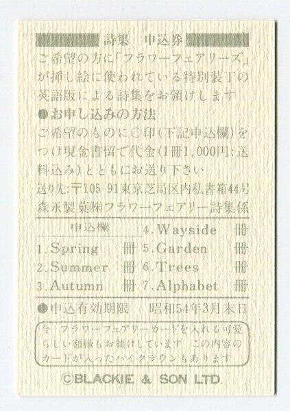 森永製菓 裏面:右上番号ナシ S54/3月末 The Foxglove Fairy