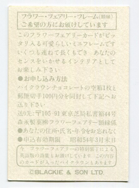森永製菓 裏面:右上番号ナシ S54/3月末 The Wayfaring Tree Fairy
