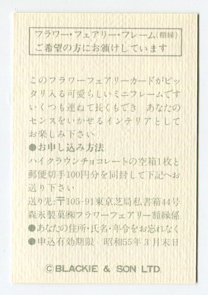 森永製菓 裏面:右上番号ナシ S55/3月末 The Foxglove Fairy