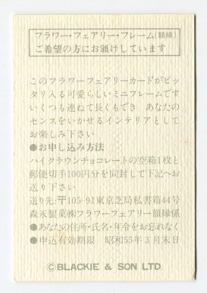 森永製菓 裏面:右上番号ナシ S54/3月末 The Wayfaring Tree Fairy