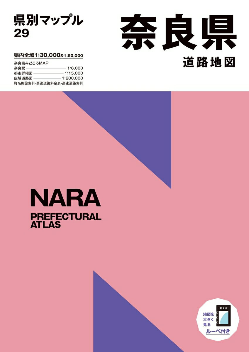 『県別マップル』は、北海道を除く46都府県をカバーする幅広い用途に対応する万能型の道路地図です。高速道路や国道など道路の種類による色分けや、主要な建物の着色しています。また、地名や場所がわかりやすいように色分けをして行政名や町名にはよみがなを入れるなど、ネットやスマートフォンの地図よりもわかりやすい表現を工夫しています。◇縮尺県内全域1:30,000または1:60,000、奈良駅1:6,000、都市詳細図1:15,000、広域道路図1:200,000◇トピック巻頭のみどころMAPでは、おでかけにおすすめの見どころをイラストとともに紹介。鉄道や高速道路関連の情報も充実しています。付録にて町名索引及び市役所や官公署ほか便利な施設索引を掲載しています。新たに「高速道路索引」を掲載しています。都府県内の高速道路ごとにインターチェンジやSA・PAなどを一覧にまとめてあり、インターチェンジの順番を確認したり地図ページへの索引としても便利に使えます。付録のシートタイプのルーペを使うと、文字だけでなく道路の交差やインターチェンジの入口など細かな部分まで大きく見ることができます。〜昭文社のロングセラー商品。幅広い用途に対応する"万能型"の道路地図〜●商品特徴・各都府県の見どころをイラストとともに紹介する「みどころMAP」付き・地図に不慣れな方でも使いこなせるよう、町名や番地などから目的地を探せる・ルーペを添付●様々な利用シーン・レジャーや商用として・おでかけ前の目的地探し、経路検索やプランニングに・おでかけ中の移動に・おでかけ後の記録、書き込み用に
