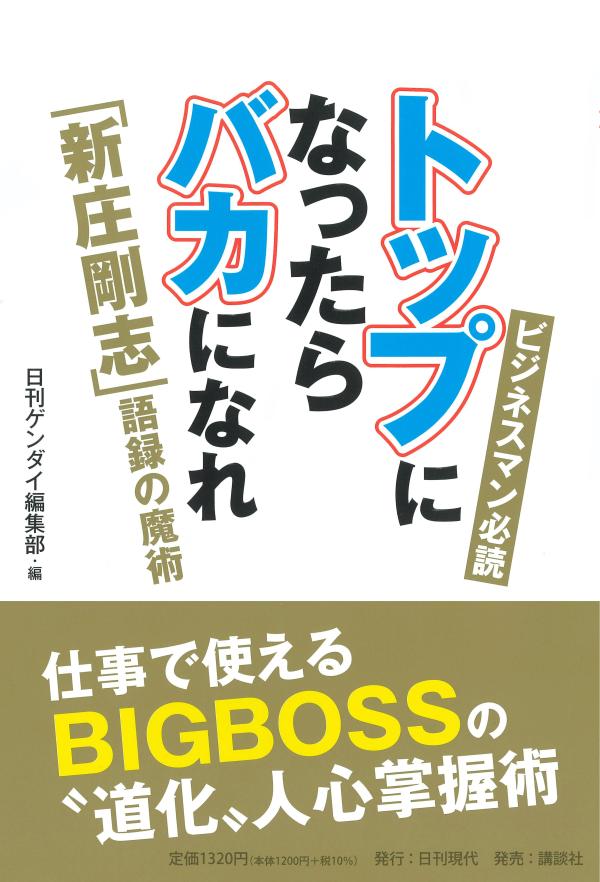 「BIGBOSS」こと新庄剛志を「ニューリーダー論」の視点から分析。ビジネスマン向けに焦点を絞った貴重な一冊だ。「語録」と「証言集」の2部構成になっている。 ド派手なパフォーマンスと奇抜な戦術で、プロ球界に新風を巻き起こす新庄監督とは何者なのか。奇をてらい、耳目を集めることだけに快感を覚える軽薄な男なのか。 取材を進めると違った。 「道化」を演じる「策士」--それが彼の正体だった。高校時代の恩師や元同僚の話を聞くと、イメージを覆すエピソードばかりだった。チャラチャラしながら、陰では誰よりも練習を怠らない選手。人気者になっても「結果を出さなければただのバカ」と自分のことを理解し、鍛錬を怠らない。だから大舞台にめっぽう強く、阪神、メジャーでも活躍できたのだろう。 その「策士ぶり」は、日ハム監督就任以来の数々の公式発言でさらに光り始めている。 「優勝なんか一切めざしません」に代表される、常識を覆す新庄語録。 それをウラ読みすると、低迷する球団と選手、それを取り巻くファンをどうすれば鼓舞し、熱狂させ、前進させることができるか、常に考えながら発したセリフなのだ。 トップになったら、リーダーはどうすべきなのか。 お調子者になって若手選手を引き付け、基本を説き、力を引き出そうとする新庄流の指導法はビジネスの世界にも大いにつながる。部下にやる気を出させ、奮い立たせ、100%動かす……。それにはどんな言葉で説いたらいいのか。 新庄語録にはそのエッセンスが詰まっている。悩むリーダーや、管理職にきっと役立つ一冊になっている。 「トップになったらバカになれ!」--。