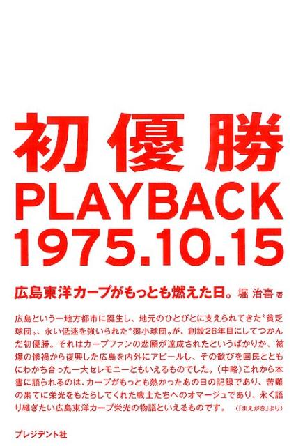 広島という一地方都市に誕生し、地元のひとびとに支えられてきた“貧乏球団”、永い低迷を強いられた“弱小球団”が、創設26年目にしてつかんだ初優勝。はじめてまとめられた伝説の一日の物語。