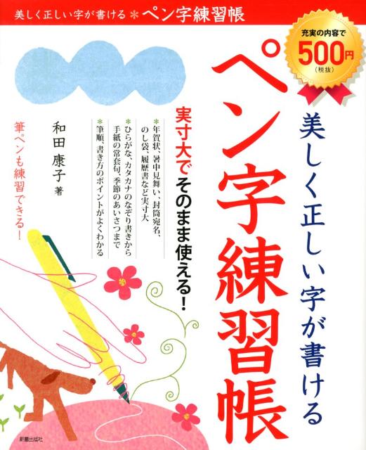 ★★シリーズ累計117万部突破!!★★和田康子先生著の大好評「ペン字練習帳」シリーズの第1弾!書籍ペン字ジャンル売り上げNo.1 継続中の大ロングセラー商品です。きれいで美しい文字が書けるようになるのはもちろん、実用性にもこだわり、よく書く言葉を厳選して収載しています。ひらがな、カタカナ、漢字、アルファベット、数字の練習から、はがきや手紙で良く使う語句・文例、名前や地名、葉書や封筒などの宛名、結婚式の招待状、年賀状、暑中見舞い、カード、履歴書などの書き方まで幅広く網羅。筆ペンの練習もできるフォーマット付。大判サイズでなので開きやすく、ストレスなく書き込めます。さらに、「もっと練習したい」という声に応え、新星出版社ホームページから罫線入りの練習用紙をダウンロードできるようにしました。お手軽なワンコイン(本体500円)で、何度も繰り返し練習するのに最適な1冊!
