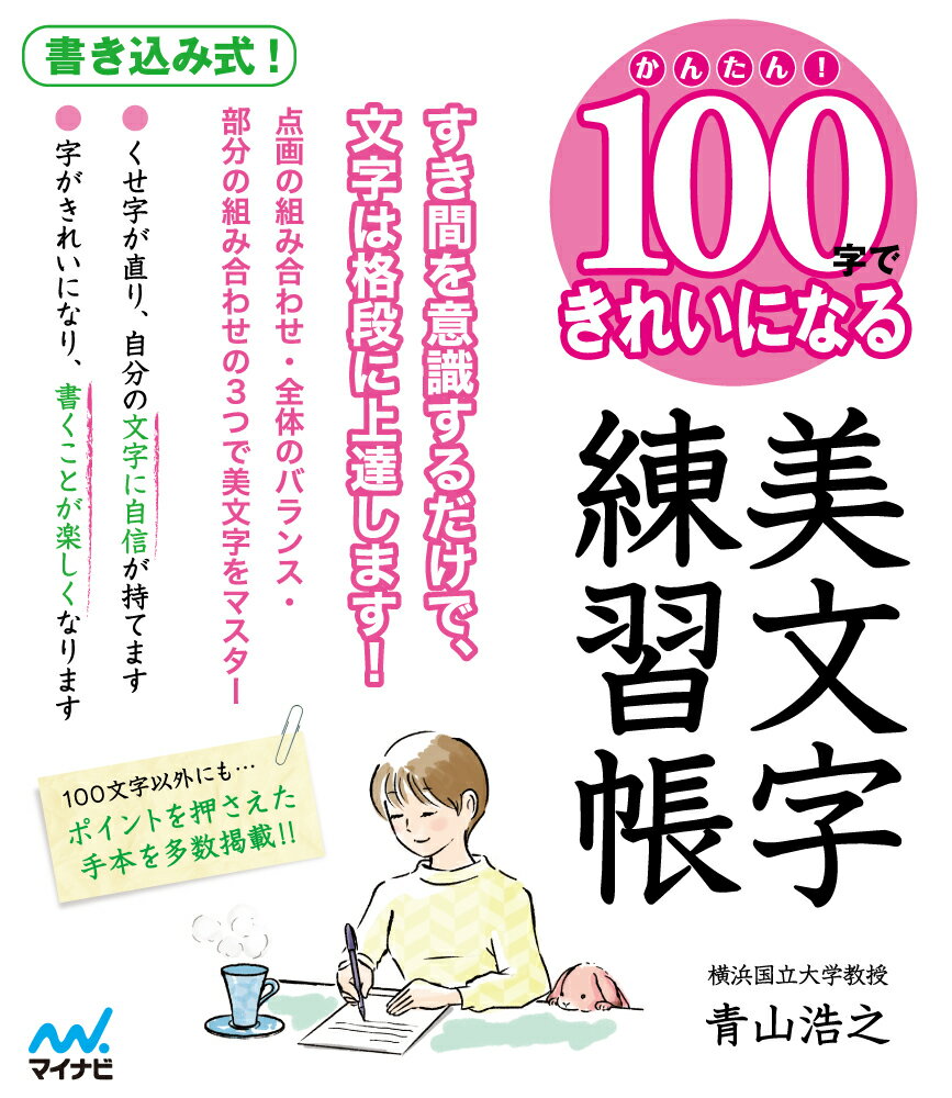 「かんたん!100字できれいになる」シリーズの第3弾は美文字です! 美文字研究の第一人者である、青山浩之先生の素晴らしいお手本をもとに、 すき間を意識するだけで、文字は格段に上達します! 点画・の組み合わせ、全体のバランス、部分の組み合わせの3つで、美文字はマスターできます! くせ字が治ることで、自分の文字に自信が持てます。 字が格段にきれいになり、 手書きするのが楽しくなります!美文字は「すき間均等法」と「3つの美文字テクニック」でかんたんに極めることができる上達のポイントと美文字に近づくためのヒントはじめに美文字を書くための本書の使い方効果的な書き方の基本を覚えよう動きに慣れることからはじめよう 線みがき編 動きに慣れよう “手指コントロール”をみがけば線は美しく書ける筆圧の強弱や手指のコントロールは毛筆の動きで理解できる線みがきは終筆と送筆がポイント 「止め・はね・払い」+「折れ・反り・曲がり」の6つをみがこう終筆の線みがき 止め はね 払い送筆の線みがき 折れ 反り 曲がり漢字100文字練習 形みがき編ステップ1 隣り合うすき間を整えるだけで見た目が変わる「すき間均等法」横画どうしのすき間均等法縦画どうしのすき間均等法横画と縦画のすき間均等法斜めの点画のすき間均等法 画数の多い文字のすき間均等法ステップ2美文字を極める「3つの美文字テクニック」を使って字形をみがくテクニック1 点画の組み合わせ1-1 文字のメリハリを極める【長短】 1-2 安定したフォルムを極める【方向】1-3 丁寧な美しさを極める【接し方】1-4 魅せる文字を極める【交わり方】テクニック2 全体のバランス2 文字のシルエットを極める【外形と中心】テクニック3 部分の組み合わせ3-1 複合文字を極める【左右(へんとつくり)】3-2 複合文字を極める【上下(かんむりとあし)】3-3 複合文字を極める【内外(かまえ、たれ、にょう)】ひらがな・カタカナ・漢数字もきれい 美文字応用編ひらがなの練習カタカナの練習漢数字の練習練習用紙コラム「すき間均等法」で難しい漢字も整う令和の文字「令」と「令」を書き分けよう複合文字は部分どうしのバランスが美文字のポイント「たれ」のセンター外しと、「にょう」の払いの強調濁点・半濁点のあるひらがな・カタカナの書き方のコツ文章の書き方のルール