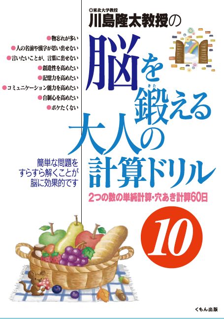 1日に1枚ずつ,表面では,2つの数のたし算,引き算,掛け算,割り算が混じった計算を50問,裏面では,計算式の中の空欄にあてはまる数を求める問題を25問,解いていきます。特に裏面の穴あき計算は,頭の中で計算していきますので,短期記憶のトレーニングにもなり,既刊『脳を鍛える大人の計算ドリル』シリーズを行っていただいた方でも,新たな気持ちで取り組める内容になっています。時間を計って,どれだけ短時間に解けるか,挑戦してみてください。自分の記録を更新することが,学習を継続することへの一助になります。また,前頭葉機能チェックを行って,脳が若返っていく変化を実感してください。