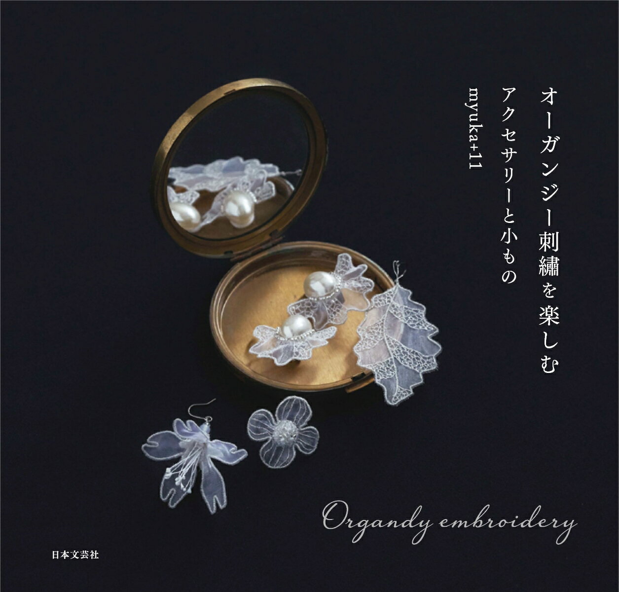 オーガンジーに輪郭のワイヤーを貼り付け銀色の糸で刺繍して切り取りアクセサリーに仕立てます。ビーズなども使って、繊細に、ときに華やかに。花や葉などの自然のモチーフを中心にイヤリング、ピアス、ブローチのほかヘッドドレスやリングピローなどのウエディングアイテムも。記念日を演出する一点となりそうです。もちろん、普段使いにもおすすめです。ハンドメイドなのにこの繊細さが出せるのは細番手の糸ならでは。太めのミシン糸ぐらいの細さです。Lessonページでは、平面と立体の両パターンで詳しく作り方を解説していますので初めての方にも作っていただけます。軽やかな仕上がりをお楽しみください。FlowerLeafIvyLaceSnowWaterHow to make 作り方道具と材料 平面作品のLesson 立体作品のLessonこの本で使用しているステッチ
