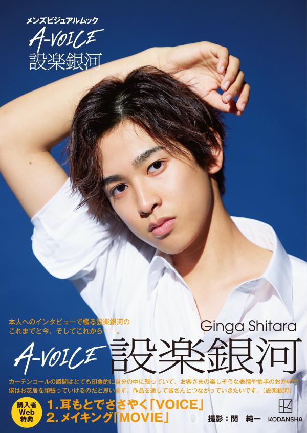 臨場感たっぷりの「VOICE」や、より素に近い表情を垣間見ることができる「メイキングMOVIE」がたっぷり楽しめるなど、多チャンネルで推しメンに迫る新感覚メンズ写真集シリーズ『A-VOICE』。その第3弾は、俳優・設楽銀河!『刀剣乱舞』などに出演し、中性的な魅力と確かな演技力で注目される設楽ですが、実年齢はまだ18歳。今回は「少年」と「青年」のはざまの「今しかないきらめき」を余すところなく撮りおろしました。まだまだ違和感なく着こなせる「制服」に着替え、校庭や教室ではしゃいだかと思えば、プライベート感いっぱいの室内シーンではドキッとするようなアンニュイな眼差しで見る者の胸をキュンキュンさせます。さらにスタジオ撮影では、犬と戯れる無邪気さと、本人が「初めてですね」と語る「ビジネス系スーツ&眼鏡」のクールさでギャップ萌え必至の構成となっています。本シリーズの特長でもある「VOICE」では甘〜いデートシーンや爽やかな学園ドラマ風の設定で数種類のセリフが録音されています。設楽銀河本人があたかも耳元でささやいているかのような臨場感溢れるナマの声に、きっと胸の奥をくすぐられるはず。さらに1万字以上のボリュームで迫るロングインタビューは必読。知られざるエピソードや将来への強い意志に、胸を熱くさせられます。ちなみに紙版発売日に同時配信となる電子版では、そのインタビューの模様を録画した「インタビューMOVIE」を収録。ページの都合で泣く泣くカットした「ストーリー」を堪能できます。また、この電子版には30カットの新規写真を設楽本人が選んで追加もしています。