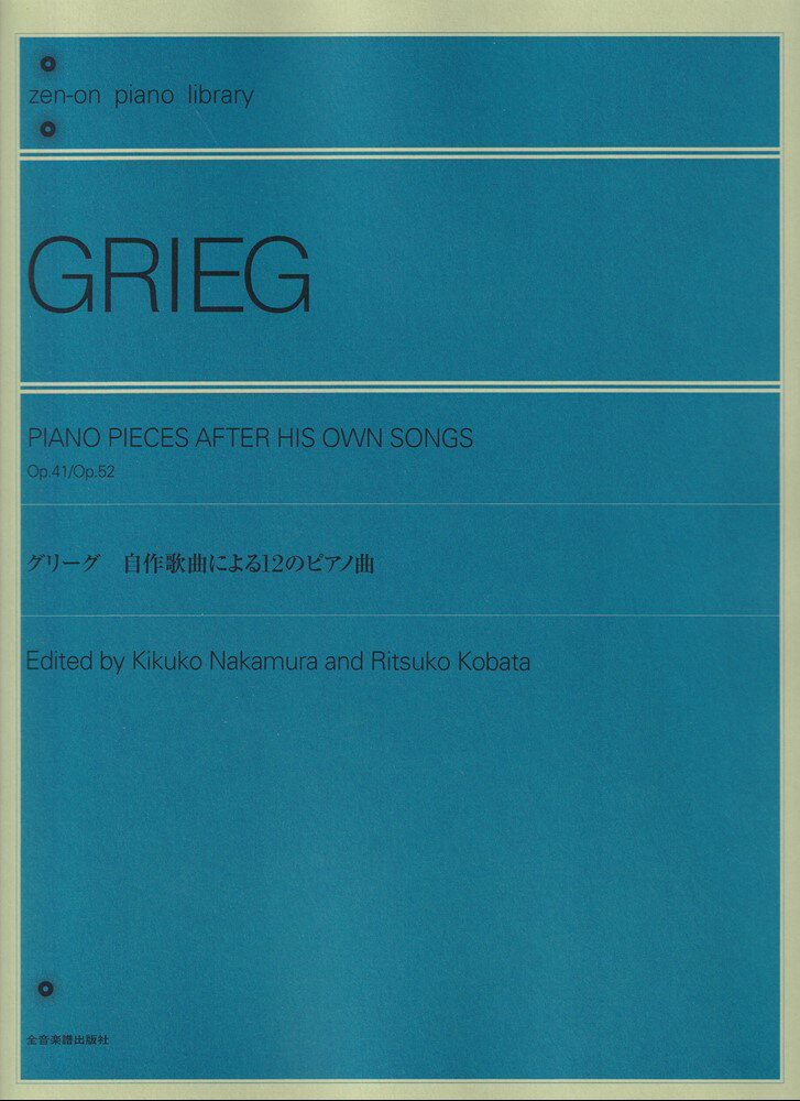 全音楽譜出版社 全音ピアノライブラリー グリーグ 自作歌曲による12のピアノ曲