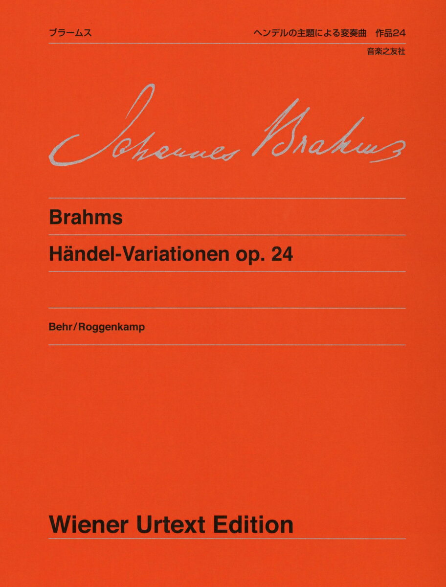 8小節のテーマに続いて25の変奏があり、最後にはフーガが配置されている。「演奏への提案」では、ブラームスが早い時期から過去の音楽への関心を示し、音楽歴史学者とともに過去の巨匠たちの作品の編纂に加わったことが述べられる。1859年に出版されたヘンデル全集第2巻の中に、作品24の変奏曲の基礎となった主題を見出したことが作曲の契機になったようだ。装飾音、デュナーミク、テンポ、発想標語、運指法、ペダルについて、ブラームスの自筆譜と校訂作業、ブラームスの他作品と比較して詳細に記述されているので、演奏への手がかりが豊富に得られる。さらに、後年作曲されたピアノ協奏曲第2番 変ロ長調 第1楽章の主題にも、この作品の主題との関連がうかがえることを、譜例を用いて示す。「校訂報告」ではデュナーミク、音価、音高などの変更を詳細に記している。
