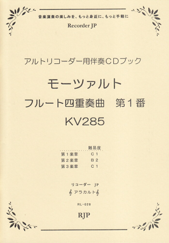 【輸入楽譜】モーツァルト, Wolfgang Amadeus: フルート四重奏曲 第1番 ニ長調 KV 285