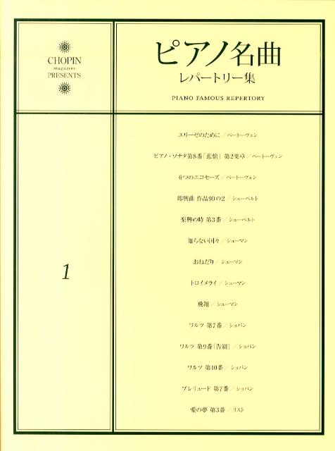 エリーゼのために WoO.59|ピアノソナタ第8番「悲愴」第2楽章 Op.13|6つのエコセーズ WoO.83|即興曲 作品90の2 Op.90-2|楽興の時 第3番 Op.94-3|知らない国々 Op.15 (「子供の情景」より)|おねだり Op.15 (「子供の情景」より)|トロイメライ Op.15 (「子供の情景」より)|飛翔 Op.12 (「幻想小曲集」より)|ワルツ第7番 Op.64-2|ワルツ第9番「告別」 Op.69-1|ワルツ第10番 Op.69-2|プレリュード第7番 Op.28-7|愛の夢 第3番