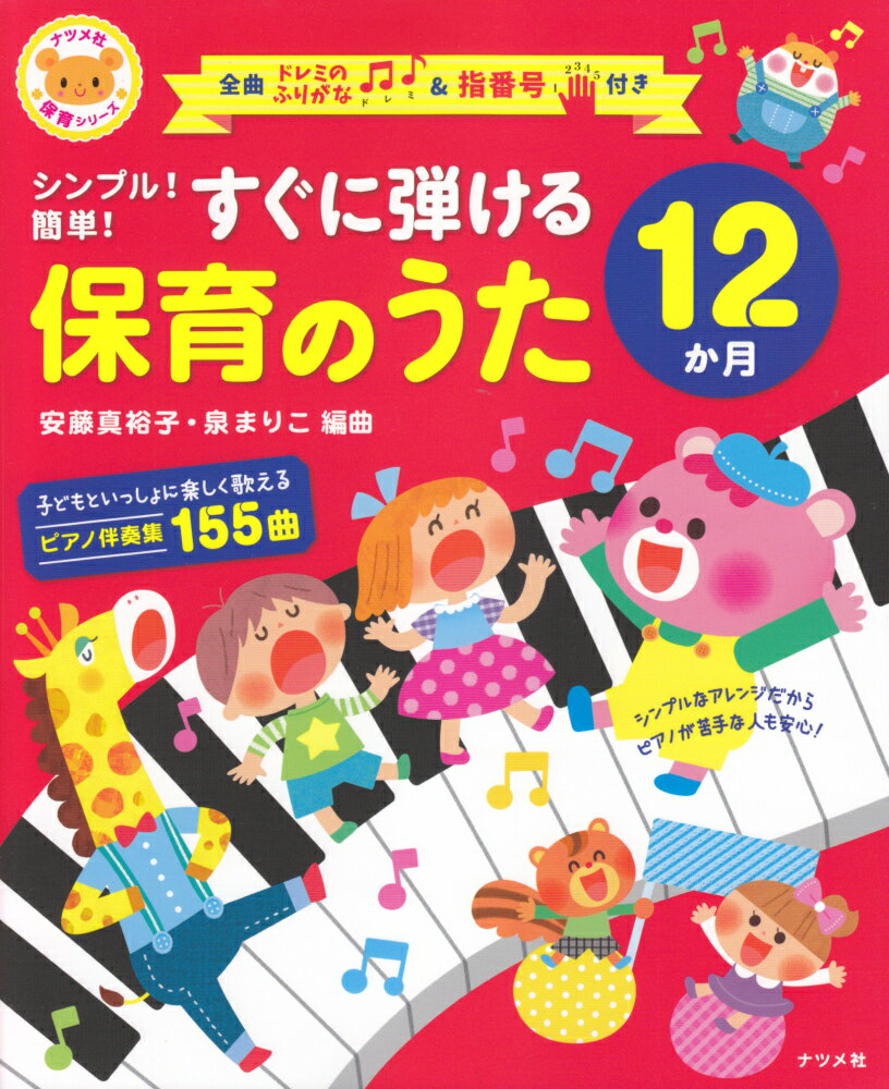 毎日の保育や行事で歌いたい155曲のピアノ伴奏譜を厳選して掲載しました。月別に曲を紹介していますので、季節や行事にあわせて曲を選ぶことができます。ピアノ初心者でも簡単に弾けるよう、また、子どもが歌いやすいように、シンプルなアレンジとし、さらにドレミのふりがなと指番号も付けました。■4月(おはながわらった/ぶんぶんぶん/ともだち讃歌 など)■5月(こいのぼり/さんぽ/カエデの木のうた など)■6月(大きな古時計/あめふりくまのこ/にじ/にじのむこうに など)■7月(たなばたさま/手のひらを太陽に/ぼくのミックスジュース など)■8月(海/キャンプだホイ/オバケなんてないさ/ホ!ホ!ホ! など)■9月(赤とんぼ/虫のこえ/山の音楽家/パレード など)■10月(どんぐりころころ/線路は続くよどこまでも/きのこ/よーい・どん! など)■11月(やきいもグーチーパー/小ぎつね/赤鬼と青鬼のタンゴ など)■12月(あわてん坊のサンタクロース/ジングルベル/うさぎ野原のクリスマス など)■1月(一月一日/北風小僧の寒太郎/やぎさんゆうびん など)■2月(雪/豆まき/こんこんクシャンのうた/おにのパンツ など)■3月(ありがとうの花/Believe/さよならぼくたちのほいくえん/一年生になったら など)■人気・定番曲(小さな世界/勇気100%/勇気りんりん/世界に一つだけの花/たいせつなたからもの など)