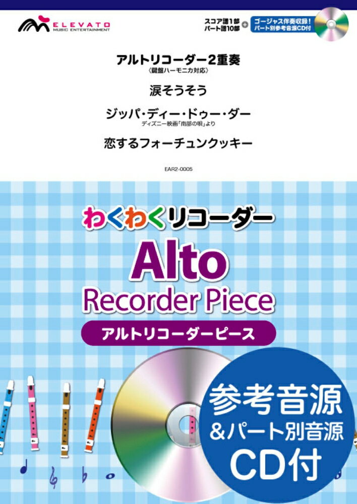 EAR2-0002 わくわくリコーダー アルトリコーダーピース/アルトリコーダー2重奏<鍵盤ハーモニカ対応> きらきら星/チムチムチェリー/風が吹いている
