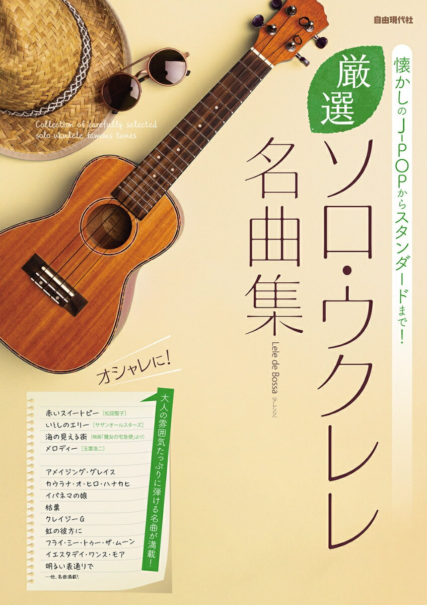 懐かしのJ-POPからカーペンターズや枯れ葉等の名曲、スタンダード曲を1冊に収載したソロ・ウクレレ曲集。カンタンな難易度の曲から難しい曲まであり、幅広く楽しめる!■懐かしのJ-POP編赤いスイートピー/松田聖子SWEET MEMORIES/松田聖子いとしのエリー/サザンオールスターズいつも何度でも/木村 弓オリビアを聴きながら/杏里風になりたい/THE BOOM元気を出して/竹内まりやひまわりの約束/秦 基博少年時代/井上陽水海の見える街(映画「魔女の宅急便」より)ルージュの伝言/荒井由実未来予想図2/DREAMS COME TRUEメロディー/玉置浩二■スタンダード編アラウンド・ザ・ワールド(Around The World)アメイジング・グレイス(Amazing Grace)カウラナ・オ・ヒロ・ハナカヒ(Kaulana O Hilo Hanakahi)いつか王子様が(Some Day My Prince Will Come)イパネマの娘(Garota de Ipanema)大きな古時計(My Grandfather's Clock)クリスマスおめでとう(We Wish You a Merry Christmas)グリーン・スリーブス(Green Sleeves)枯葉(Autumn Leaves)クレイジーG(Crazy G)この素晴らしき世界(What a Wonderful World)スウィート・ホーム・シカゴ(Sweet Home Chicago)ダニー・ボーイ(Danny Boy)虹の彼方に(Over the Rainbow)フライ・ミー・トゥー・ザ・ムーン(Fly Me To The Moon)ハッピーバースディトゥーユー(Happy Birthday To You)波(Wave)私の青空(My Blue Heaven)ブルー・スター(Blue Star)星に願いを(When You Wish Upon a Star)魅惑のワルツ(Fascination)ムーン・リバー(Moon River)アロハ・オエ(Aloha Oe)ブルー・ハワイ(Blue Hawaii)イエスタデイ・ワンス・モア(Yesterday Once More)明るい表通りで(On The Sunny Side Of The Street)茶色の小瓶(Little Brown Jug)オール・ザ・シングス・ユー・アー(All the Things You Are)小さな竹の橋で(On A Little Bamboo Bridge)