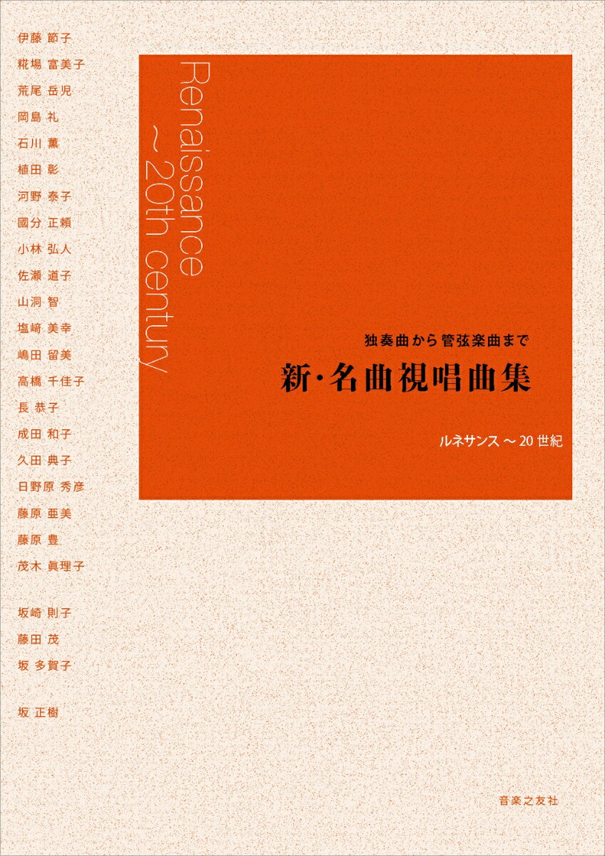 古今の名曲から、音大生や音楽を学ぶ生徒に、興味を持って親しんでほしい名旋律を選曲し、歌唱できるようにピアノ伴奏付きの視唱曲集に編曲・編集した。ルネサンスから20世紀前半まで時代順に並べて解説をつけているので、様々な国・時代の音楽様式を学ぶことができる。また、2声の曲やリズムパート付の編成も収録し、視唱ばかりでなく、楽器聴音や初見練習などにも活用できる。パレストリーナ:モテット「鹿が谷川の水をもとめるように」ラッソ:ほら、なんと楽しいこだまが(エコー・カノン)モンテヴェルディ:歌劇「オルフェオ」より 第1幕 合唱の場クープラン:オルドル第1番より 第1クーラントヴィヴァルディ:ヴァイオリン協奏曲「四季」より 「冬」ラルゴJ.S.バッハ:音楽の捧げ物より 3声のリチェルカーレハイドン:トランペット協奏曲Hob.VIIe:1より 第2楽章モーツァルト:フルート四重奏曲K.285第1番より 第2楽章モーツァルト:レクイエムK.626より キリエベートーヴェン:ヴァイオリン協奏曲Op.61より 第3楽章シューベルト:交響曲第8番D944「グレート」より 第3楽章ベルリオーズ:幻想交響曲Op.14より 第4楽章「断頭台への行進」ショパン:ピアノ協奏曲第1番Op.11より 第2楽章シューマン:交響曲第3番Op.97「ライン」より 第1楽章ワーグナー:楽劇「トリスタンとイゾルデ」より 第1幕前奏曲ヴェルディ:レクイエムより 涙の日ブラームス:交響曲第3番Op.90より 第33楽章ボロディン:歌劇「イーゴリ公」より 第2幕ダッタン(ポロヴェツ)人の踊りサン=サーンス:動物の謝肉祭より 第12曲「化石」ビゼー:歌劇「カルメン」より 第1幕セギディリャチャイコフスキー:バレエ「眠れる森の美女」Op.66より 第2幕パノラマシャブリエ:オーケストラのための狂詩曲「スペイン」ドヴォルザーク:ピアノ三重奏曲第4番Op.90「ドゥムキー」より 第5楽章グリーグ:ペール・ギュント第1組曲Op.46より 第1曲「朝」 フォーレ:パヴァーヌOp.50ヤナーチェク:弦楽四重奏曲第2番「内緒の手紙」より 第4楽章マーラー:交響曲第4番より 第1楽章ドビュッシー:前奏曲第1集より 第2曲「帆」交響詩「ティル・オイレンシュピーゲルの愉快ないたずら」Op.28デュカス:魔法使いの弟子サティ:ピカデリーグラナドス:スペイン舞曲集より 第5曲「アンダルーサ」ラフマニノフ:ピアノ協奏曲第2番Op.18より 第2楽章ホルスト:組曲「惑星」Op.32より 第1曲「火星」ラヴェル:ボレロファリャ:バレエ「恋は魔術師」より パントマイムレスピーギ:交響詩「ローマの噴水」より 第1曲「夜明けのジュリアの谷の噴水」バルトーク:管弦楽のための協奏曲 Sz.116,BB123より 第4楽章「中断された間奏曲」シェーンベルク:浄夜ガーシュウィン:ラプソディー・イン・ブルーショスタコーヴィチ:交響曲第5番Op.47より 第3楽章