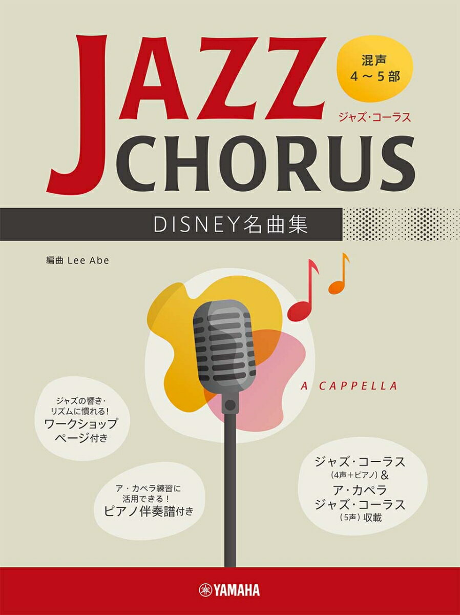 ディズニーの名曲を混声4〜5部のジャズ・コーラスで楽しめる1冊です。ジャズ・コーラス(4声+ピアノ)が2曲、ア・カペラ ジャズ・コーラス(5声)を4曲、計6曲収載。ア・カペラの方には、曲により練習に活用できるピアノ伴奏譜(ピアノリダクション)も掲載。巻頭にはジャズの響き・リズムに慣れるワークショップページもついているので、初めてジャズ・コーラスに取り組む方にも安心の内容です!編曲は、「ジャズからポップまで、幅広いジャンルを熟知しサンドイッチのごとく簡単に料理してしまう」(ボストン・グローブ紙)と評される、現在バークリー音楽大学准教授のLee Abe氏。[1]リフレクション*[2]どこまでも 〜How Far I'll Go〜*[3]ミッキーマウス・マーチ[4]美女と野獣[5]ホール・ニュー・ワールド*[6]いつか王子様が**⇒ア・カペラ ジャズコーラス(5声)無印⇒ジャズ・コーラス(4声+ピアノ)【歌詞について】「リフレクション」「どこまでも 〜How Far I'll Go〜」「美女と野獣」は英語詞・日本語詞両方掲載。その他の収載曲は英語詞のみです。■収載曲 [全6曲を収載][1] リフレクションReflection/『ムーラン』より編成: 混声4〜5部グレード: 中上級[2] どこまでも 〜How Far I'll Go〜How Far I'll Go/『モアナと伝説の海』より編成: 混声4〜5部グレード: 中上級[3] ミッキーマウス・マーチMickey Mouse March/『ミッキーマウス・クラブ』より編成: 混声4〜5部グレード: 中上級[4] 美女と野獣Beauty And The Beast/『美女と野獣』より編成: 混声4〜5部グレード: 中上級[5] ホール・ニュー・ワールドA Whole New World/『アラジン』より編成: 混声4〜5部グレード: 中上級[6] いつか王子様がSomeday My Prince Will Come/『白雪姫』より編成: 混声4〜5部グレード: 中上級