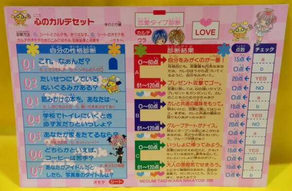講談社 2000年(平成12年)なかよし雑誌付録 立川恵 電脳少女★Mink 心のカルテセット 2000/10