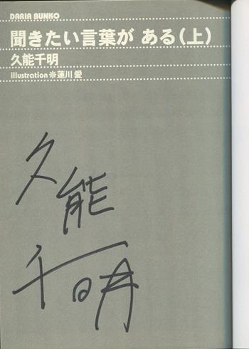 久能千明 直筆サイン本 「聞きたい言葉がある」上巻