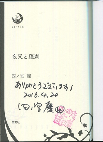 四ノ宮慶 直筆サイン本 「夜叉と羅刹」