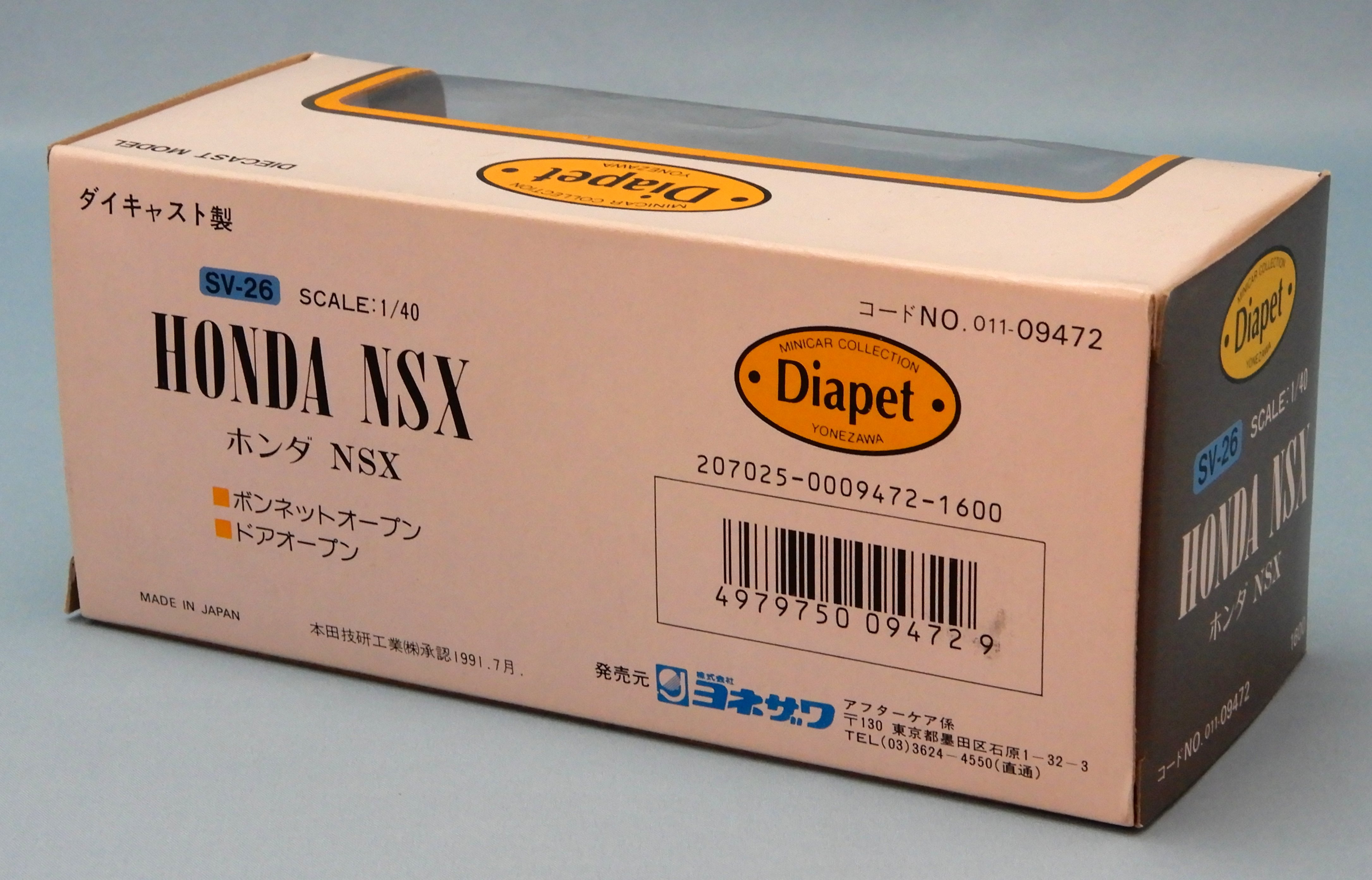 ヨネザワ 1/40ダイヤペット ホンダ NSX 白 SV-26