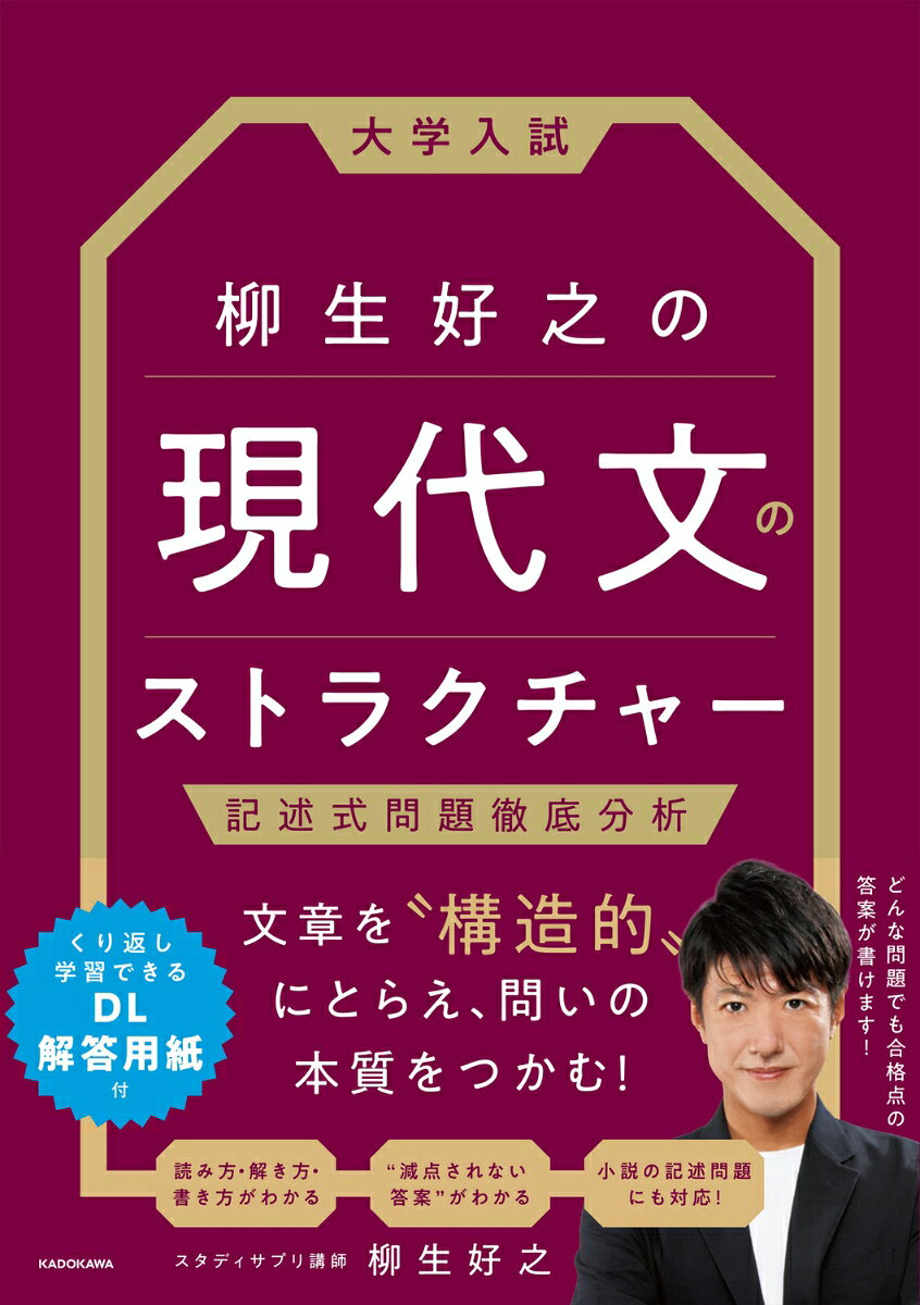 文章を”構造的”にとらえ、問いの本質をつかめばどんな問題でも「合格点」の答案が書けます!本書は、難関大受験生に最も効率的な記述式現代文の攻略法を伝えるために作られました。入試の現代文には、共通する「構造」があります。それを徹底的に解説するのが本書です。さまざまな入試問題に共通する「構造」を理論的に裏付けるために、「文法」「レトリック(説得術)」「論理学」といった理論を学び直し、「構造」を体系化しました。これを本書では「現代文のストラクチャー」と呼びます。様々な「エレメント(要素)」から構成される「ストラクチャー(構造)」こそが現代文の本質です。文章の構造が見抜けるようになれば、どの問題も同じように読み、同じように解くことができるようになります。今、皆さんの頭脳に革命を起こします。第1講 「内容説明問題」のストラクチャー第2講 「理由説明問題」のストラクチャー第3講 「記述解答」のストラクチャー第4講 「解答の根拠」のストラクチャー第5講 「心情把握問題」のストラクチャー第6講 「要約問題」のストラクチャー第7講 「全体把握問題」のストラクチャー