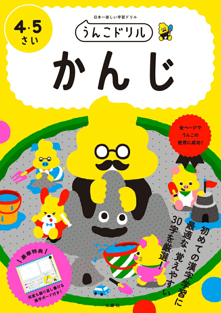 ★☆★大人気シリーズの最新作★☆★ 社会現象になった「うんこドリル」シリーズ!ひらがなやカタカナに慣れてきたら、漢字に挑戦!漢字の導入ドリルで、小学1年の学習漢字のうち覚えやすく書きやすい30文字を提出。うんこで楽しく、そして無理なく漢字に親しむことができます。1リズムで漢字を体感!うんこ先生が、漢字の書き方を丁寧にサポートします。「すう」「ぐっ」「ぴたっ」などの運筆のリズムを取りながら、指で何度もなぞることで、文字の形や書き方を体感的に覚えることができます。2手書き文字で本物を実感!美しい漢字のお手本として、手書き文字を採用しています。デザインされた機械的な活字ではなく、実際に書かれた本物の文字に慣れ親しむことで、「とめ・はね・はらい」などの正しい運筆の基礎がしっかりと身につきます。3独自の選定・順序で覚えやすい!子どもの発達段階を考え、小学一年生で学習する漢字の中から三十字を選び、書きやすくて覚えやすい独自の順序で掲載しています。また、漢字の読み、ゲームページ、運筆練習、漢字の書き、うんこ例文と多彩なページがあります。漢字の読みから書きへと少しずつステップアップできる配列にしていますので、無理なく最後までやり遂げることができます。