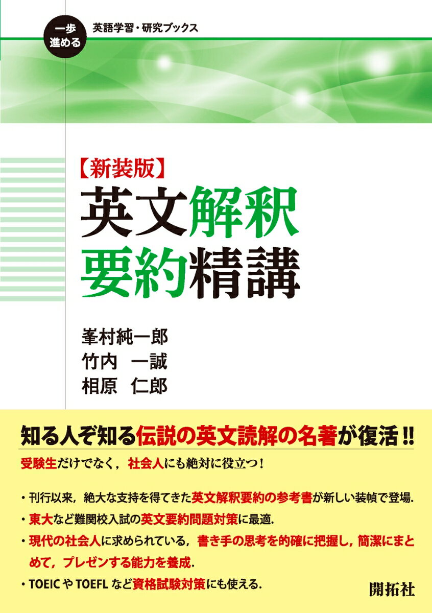 英文解釈要約精講 新装版 (一歩進める英語学習・研究ブックス) 峯村純一郎/編著 竹内一誠/編著 相原仁郎/編著