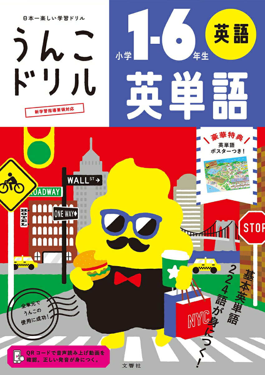 ★☆★累計発行部数 1100万部突破!大人気シリーズの最新作★☆★社会現象になった「うんこドリル」の待望の最新作!今度は「英語」を日本一楽しくします!☆うんこ絵物語で楽しく学習!楽しいうんこ絵物語を見ながら練習することで基本的な英単語を身につけられます。☆224語の重要英単語!重要英単語224単語を収録。カテゴリー別に英単語をまとめてあります。☆うんこ英単語動画にアクセス!QRコードを読み込むと英単語の動画を見ることができます。正しい音声を確かめられます。◇商品コンセプト◇小学校で英語が正式な教科となり,小学校の英語学習はいよいよ本格化します。身の回りで英語を見たり聞いたりする機会も数年前とは比べ物にならないほど増えており,英語の力が今後ますます必須となっていくことは間違いありません。新学習指導要領では小学校の間に「600〜700語程度の語」を学習することが定められています。本書では,小学校で学習する英単語のうち,必須となる基本的な224語を厳選し,カテゴリーごとに学べるよう掲載しています。漢字の書き取りや計算と同様,基礎学習は主に「くり返し見て,書く」という単調な形式をとらざるを得ませんが,子どもの集中力を持続させるのはときに難しいこともあります。本書は,英単語をうんこの絵物語とともに学習することで,飽きずに楽しく笑いながら英単語が身につけられるドリルを目指して作られました。うんこの魔法で「英語は楽しい」と感じてもらえたら,そしてゆくゆくは世界を舞台に活躍する子どもが一人でも増えてくれたなら,我々にとってこれ以上の喜びはありません。
