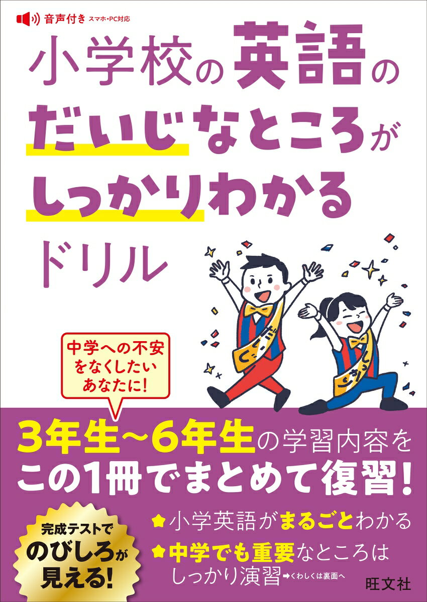 小学校で学習する内容を1冊でまとめて復習できる!中学校入学までにこのドリルをやっておけば,中学校での学習をスムーズに始めることができます。・小学英語(3年生から6年生まで)の学習内容をこの1冊でまとめて復習できます。・中学でも重要なところは「問題を解いてみよう!」のページでしっかり演習ができます。 例:おたがいのことを知る(自己紹介)/わたしは〇〇です。(be動詞の文)/わたしは〇〇をします。(一般動詞の文)/わたしは〇〇することができます。(助動詞)/わたしは〇〇をしました。(過去形)など・巻末の「完成テスト」と「のびしろチャート」で自分の「のびしろ」がわかるので,その後の学習に役立てることができます。<本冊>1-2 アルファベット(大文字・小文字)3 単語・文の書き方4 あいさつ5 おたがいのことを知る6 わたしはサッカーをします。7 あなたはサッカーをしますか。8 わたしは7時に起きます。9 わたしは月曜日に算数を勉強します。10 わたしはいつも7時にごみを出します。11 英語を話しなさい。12 わたしはハルトです。13 あなたはユイですか。14 こちらはサナです。15 それは赤いです。16 かれはユウタです。17 こちらはだれですか。18 あなたは誕生日に何がほしいですか。19 これは何ですか。20 わたしのかばんはどこですか。21 いくつですか。22 わたしはバレーボールをすることができます。23 博多駅はどこにありますか。24 わたしはゲームをすることを楽しみます。25 わたしはパーティーを楽しみました。26 あなたは夏休みを楽しみましたか。27 コアラはかわいかったです。28 わたしはラグビーの試合を見たいです。29 わたしは英語の先生になりたいです。30 何がよろしいですか。31 博物館があります。完成テスト<別冊>解答・解説/のびしろチャート