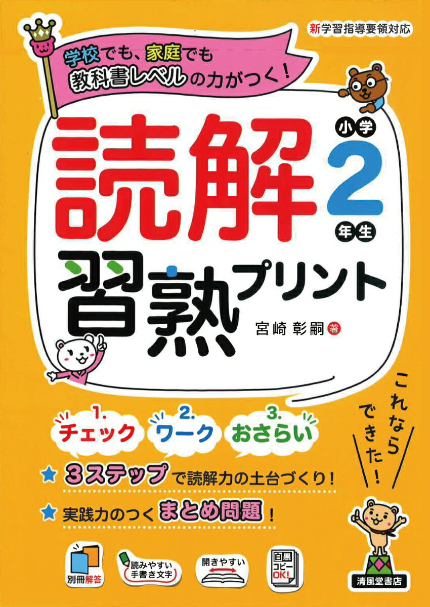 シリーズ累計100万部超のロングベストセラー商品!<br>従来からの特長である、<br>・通常よりも、さらに細かなスモールステップにする<br>・大事なところはくりかえして習熟できる<br>・教科書レベルの力が、どの子にも身につく<br>は、そのままにさらにパワーアップ!<br>以下の点が加わりました!<br>・読解力の土台をつくる、<br> チェック・ワーク・おさらいの「3ステップ学習」<br>・実践力のつく「まとめ問題」<br>・答え方で迷わない!答えに「ワンポイントアドバイス」<br>・理解度を助ける「太字の手書き風文字」<br>・白黒コピーで消えるページ番号(先生向け)<br>従来からさらにパワーアップした習熟プリントで、さらに子どもたちに力をつけましょう!<br>