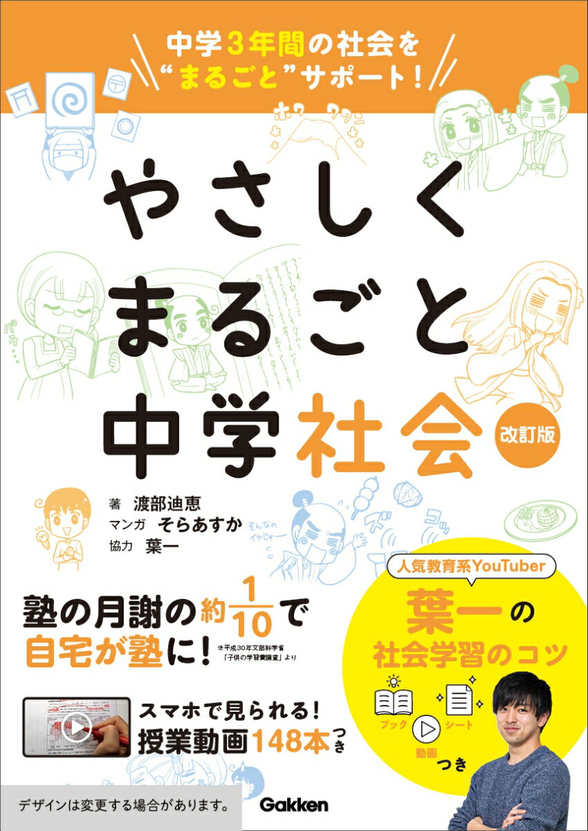 ★★★自宅でいつでも動画授業! 参考書があなただけの先生になる! ★★★中学3年分の社会の内容を1冊に凝縮。YouTubeでこの本をテキストにした動画授業をすべて公開。いつでも授業が受けられる。誌面には楽しいマンガがついてヤル気が続く! また、人気教育系YouTuber葉一監修の「学習のコツ」の解説と動画を収録、便利な勉強シートも付属した充実の別冊つき。…………………………………………………………………………………本書の特長[FEATURES]01 動画授業があなただけの先生になる! 本書の動画マークがついた部分は、YouTubeで著者の授業動画が見られます。動画をはじめから見てイチから理解をしていくもよし、学校の授業の予習に使うもよし、つまずいてしまった問題の解説の動画だけを見るもよし。パソコンやスマートフォンでいつでも見られますので活用してください。02 中学3年分の内容をしっかり学べる! 本書は中学3年分の内容を1冊に収めてありますので、自分のペースで学習をすすめることができます。学校の進度に合わせてすすめる、前の学年の勉強をおさらいしたい人は1日に2・3レッスンすすめる、など使いかたは自由です。03 人気教育系YouTuber葉一監修の別冊つき! 本書には人気教育系YouTuber葉一監修の社会の「学習のコツ」の解説と動画を収録、便利な勉強シートも付属した充実の別冊がついています。別冊を活用すれば、最後まで参考書をやりぬく手助けとなること間違いなしです。…………………………………………………………………………………やる気になれる参考書、やる気が続く参考書。ーー「参考書」×「授業動画」のやさしくまるごとシリーズなら、自宅が「学びの場」になる。