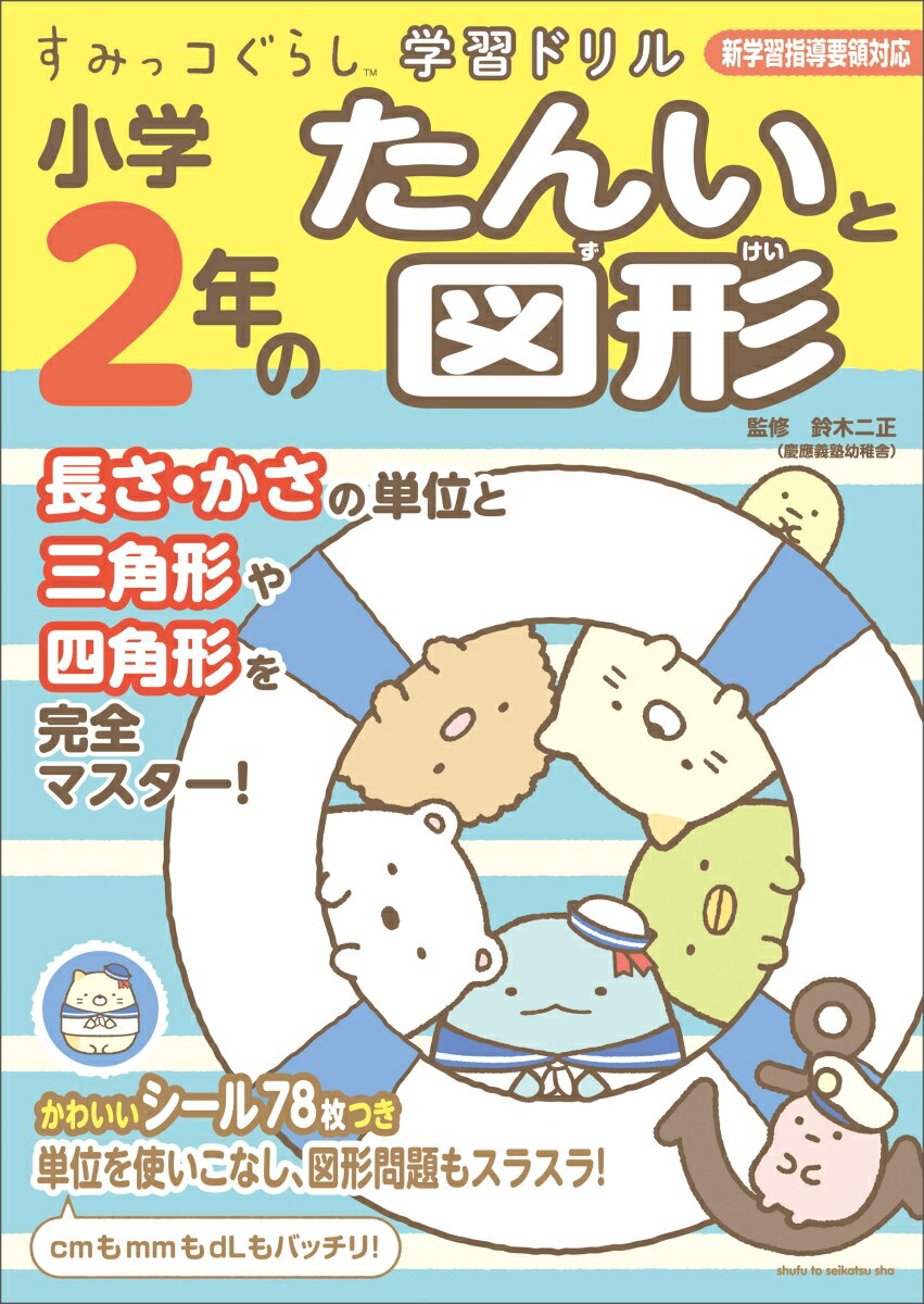 大人気の「すみっコぐらし」が小学生向けのかわいいドリルに!小学2年で習う長さ・かさの単位や、三角形・四角形がバッチリ「すみっコぐらし学習ドリル 小学2年のたんいと図形」の特長1.表紙および中面に「すみっコぐらし」のイラストがいっぱい!2.長さ(mm、cm、m)、かさ(mL、dL、L)、時間、形を学習!3.カラーページがいっぱいで、楽しく取り組める!4.学習指導要領対応。学校の復習にもぴったり5.復習ドリルやまとめのテストで、ふりかえりもキッチリ!6.「すみっコぐらし」のシール78枚つき!「長さ」/長さの はかり方・長さの たんい・ものさしの つかい方・長さの たし算 ひき算・長さの たんいの おきかえ・「かさ」/かさの たんい・かさの たし算 ひき算・かさの たんいの おきかえ・「時間」/1時間は 60分・午前と 午後・何時間 何分間・何時間前と 何時間後・何分前と 何分後・「形」/三角形と 四角形・へんと ちょう点・直角・長方形と 正方形・直角三角形・面の 形や 面の 数・はこの 形の へんと ちょう点・はこを ひらいた 図・「ひょうとグラフ」