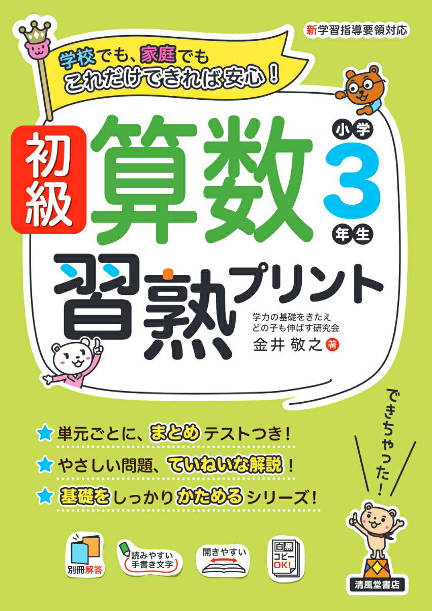 "家庭や学校で、長年親しまれているロングセラー「算数習熟プリント」が、使いやすいノートサイズになりました。スモールステップで、くり返し練習して習熟できる問題を収録し、わかりやすさを考えた手書き風文字や図解、到達度や理解度がわかるようにした「まとめテスト」、前学年のおさらいのページを取り入れ、子どもたちの基礎力を充実させるためのプリントです。■ロングセラー「算数習熟プリント」の特長1通常よりもさらに細かなスモールステップ2大事なところは、くり返し練習して「わかる」「できる」にする。3教科書レベルがどの子にも身につくようにする。ノートサイズの「算数習熟プリント」では、さらに、子どもたちの基礎力の充実と、算数が苦手な子どもたちにも取り組みやすくしました。・親しみやすさ、わかりやすさを考えた「図解」、「太字の手書き風文字」を取り入れています。・どこでつまずいているのかを、まとめテストで確認できます。・前学年のおさらいのページで、無理なく学習がすすめられます。・答え合わせがしやすいように、本文の紙面を縮小したものに赤色で答えを示しました。・学校でコピーする際には、ページ番号が消えるので、そのまま使えます。【まとめテスト】「まとめテスト」では、算数の主要な観点である「知識(理解)」〈わかる〉、「技能」〈できる〉、「数字的な考え方」〈考えられる〉問題に分類しています。この観点別で、到達度や理解度がわかります。【おぼえているかな】「おぼえているかな」では、前学年のおさらいをして、無理なく学習を進めることができるようにしました。算数は系統的な教科なので、前学年の内容が理解できると今の学年の学習が理解しやすくなります。"