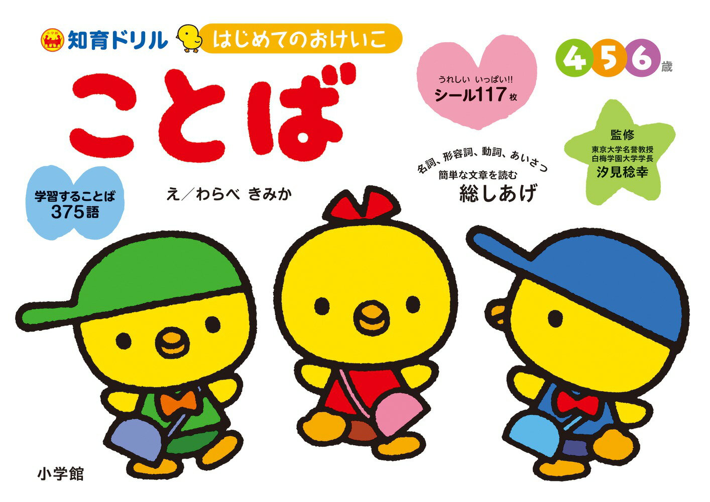 名詞、形容詞、動詞、挨拶などを楽しく学習 かわいいイラストで楽しくお稽古しながら、身近な物の名前(名詞)、形容詞、動詞、挨拶などを学習する、就学前児童のための知育ドリル。シールも使って、楽しみながら取り組むことで集中力、注意力なども高まります。 【編集担当からのおすすめ情報】 シリーズ既刊「ことば2・3・4歳」「ことば3・4・5歳」を終えられた方が、語彙を増やす<総しあげ>のおけいこをするのに最適です。また、シリーズ既刊「ひらがな2・3・4歳」「ひらがな3・4・5歳」「ひらがな4・5・6歳」では簡単な16文字から、清音46文字、濁音などを含むひらがなを段階的に学習したり、「カタカナ4・5・6歳」でカタカナの読み書き、ひらがなとの対応を、おけいこしたりできます。「知育ドリル はじめてのおけいこシリーズ」には、「ちえあそび」「おえかき」「めいろ」「すうじ」なども揃っていますので、本書をきっかけに、かわいいイラストでおけいこできる本シリーズで、他の知育分野にも取り組んでみてはいかがでしょう。